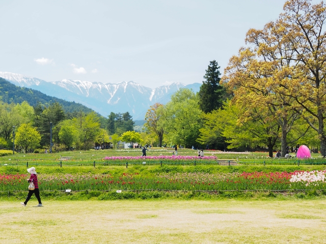 北アルプスのふもとに広がる自然体験型の大型公園。広々とした芝生の中で、クラフトや食体験、デイキャンプ、MTBパークなど、季節ごとのアクティビティが楽しめます。