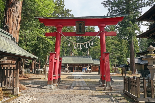 鎌倉時代に仁科氏が熊野那智大社を勧請して創建したと伝えられる信濃大町の守護神。安土桃山様式を色濃く残す本殿は国の重要文化財に指定され、境内には長野県宝の三重塔や市指定文化財の観音堂が並び、神仏習合の歴史を感じさせます。