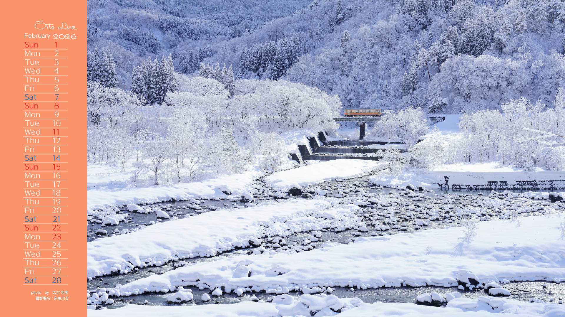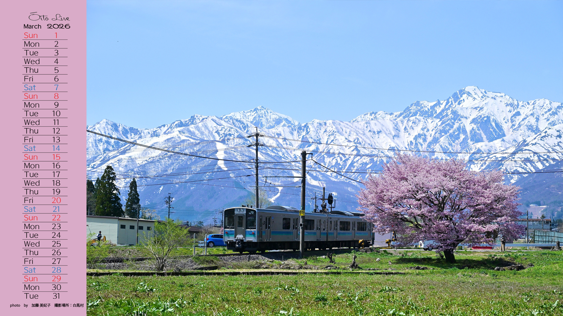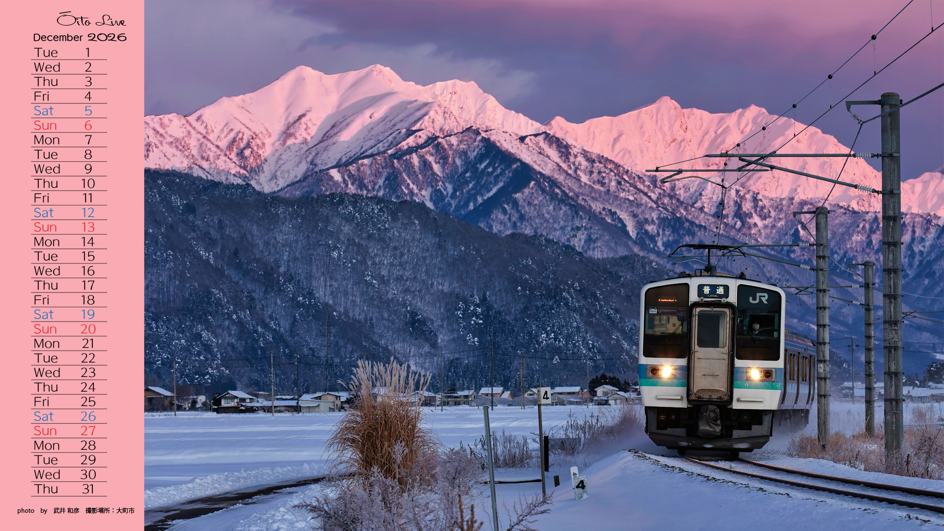 大糸線利用促進輸送強化期成同盟会では、「2026大糸線カレンダー」の掲載写真を使用した大糸線壁紙カレンダー(2026年版)を制作しました。